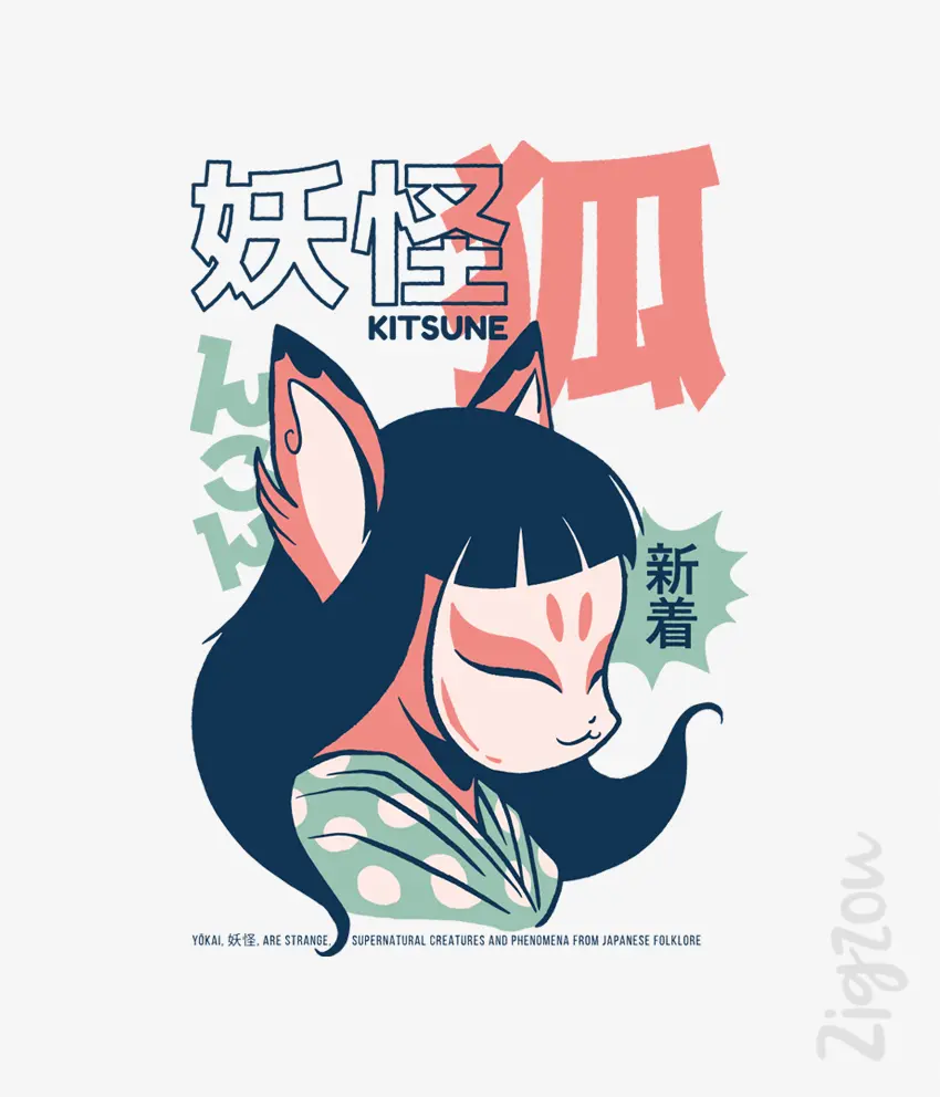 Koszulka z nadrukiem Kitsune Yokai przedstawia mistycznego lisa znanego z japońskich legend i anime. Grafika inspirowana tradycją Japonii łączy folklor, symbolikę duchów yokai i estetykę mangi. T-shirt dla fanów fantasy i japońskiej kultury.