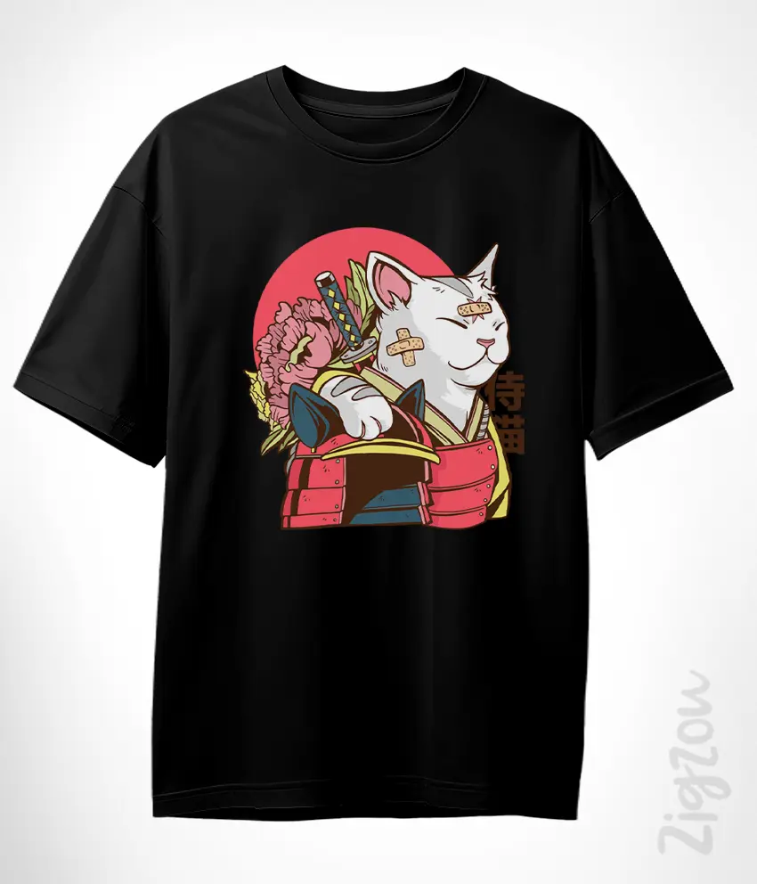 Koszulka oversize – Japoński kot samuraj