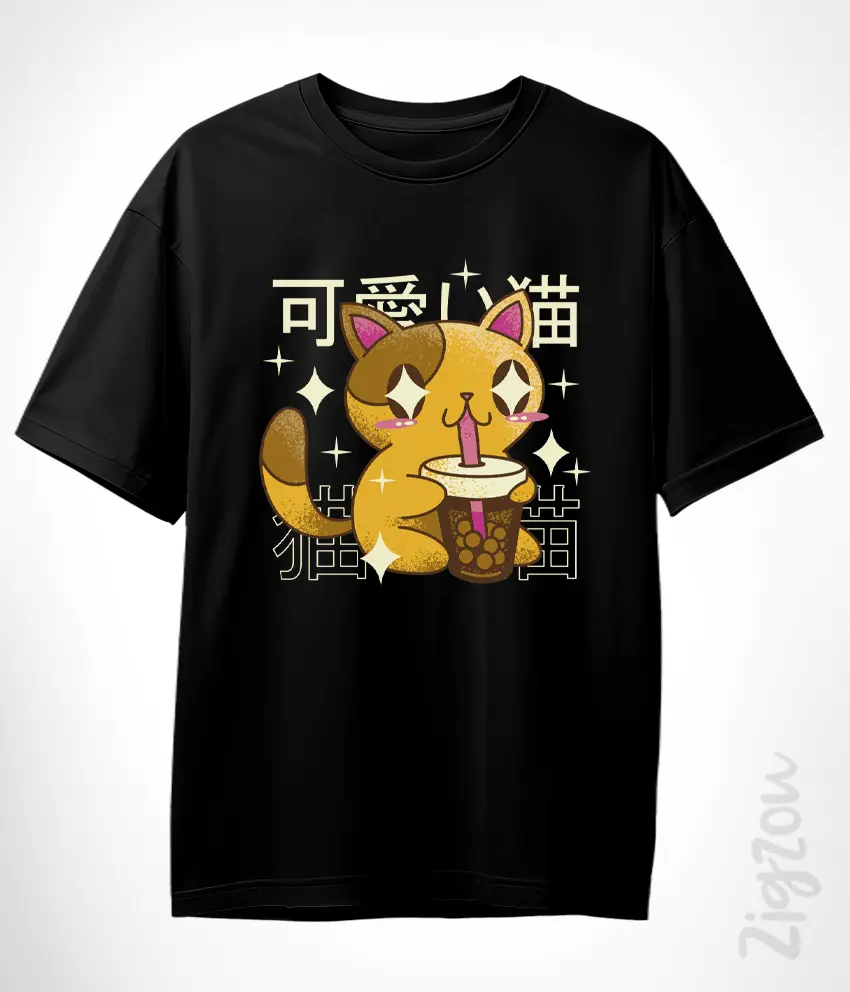 Bubble tea, czyli napój znany z kulkami tapioki, stał się symbolem nowoczesnej kultury pop. Połączenie go z uroczym kotem tworzy motyw pełen humoru i lekkości.