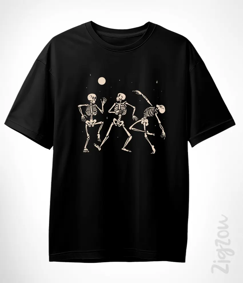 Grafiki przedstawiające tańczące szkielety kojarzą się także z muzyką, festiwalami oraz kulturą alternatywną. Motyw tańca symbolizuje wolność, ekspresję i spontaniczność. Dlatego też nadruk na koszulce tak dobrze wpisuje się w swobodny charakter.